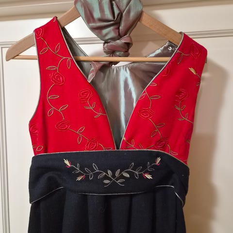 Nydelig bunad med cape, veske og skjorte. Alt er 10 år. Med oppbevaringspose.
