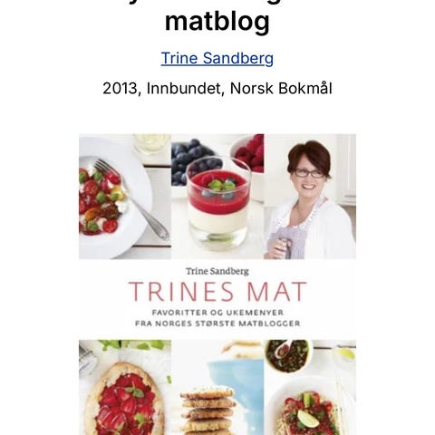 "Trines mat" av Trine Sandberg. Innbundet.