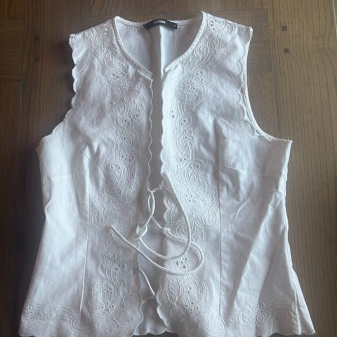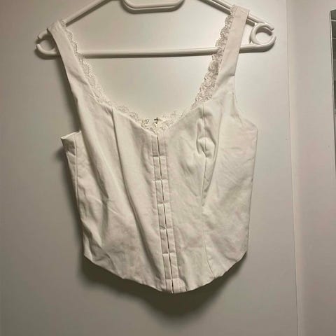 Supersøt og fin blonde korsett topp fra H&M i str: 40. Veldig fin på . Lukkes Med hemper (se bilde 4)