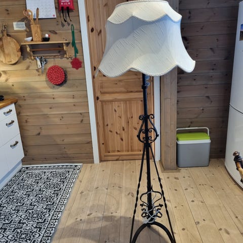 Fin, gammel stålampe i smijern høyde 169 cm.