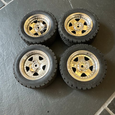 Selger her diverse deler til den sjeldne Porsche 959/Toyota Celica fra Tamiya. Veldig greit å ha liggende om man har et eksemplar av bilen(e), og trenger å restaurere litt, eller om man får tak i en bil i dårlig stand, og må bytte ut slitte/ødelagte deler. Har man en slik bil i god stand, så er den verdt en del kroner for samlere. Deler til Porsche 959 og Toyota Celica er ikke hverdagskost å komme over, og koster mye utenlands, der slikt er spesielt ettertraktet, så prisen jeg setter på dette er nok blant de rimeligere. Dekkene er i ganske god stand, har fremdeles mykhet i seg. Følger også med diverse smådeler, alt er som avbildet. Regner med at den som kjøper dette, vet hva en kjøper, og at dette er gamle deler. Jeg sender varene, men selger kun mot forskuddsbetaling. Jeg bruker ikke "fiks ferdig", da jeg mener at det tryggeste for meg som selger, er slik som jeg alltid har gjort det, altså basert på tillit med forskuddsbetaling. Om man er i tvil om min ærlighet, så henviser jeg til tilbakemeldingene her på finn. Alt avtales på pm.