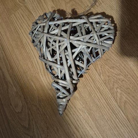 Hjerte henge pynt, laget av rekved / drivved / tre / ved