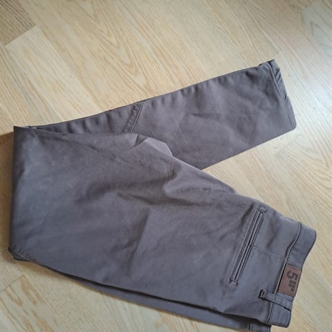 Buksen fremstår som hel og pen, men har noen "nupper" på buksebeina. Se bilder.