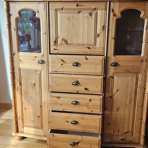 Beito veggseksjon i lakkert furu . Pent brukt med normal slitasje. Ingen skader. Befinner seg i Lakselvbukt. Kan være behjelpelig med transport og bærehjelp. Sendes ikke.