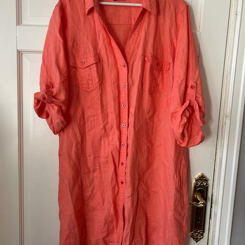 Helt ny italiensk oversized skjortekjole i 100% lin - str. XL