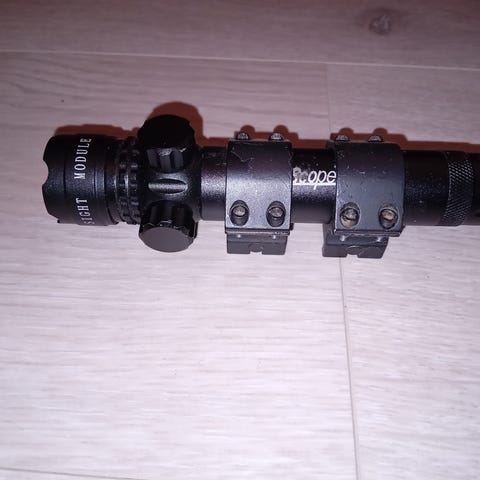 Kikkertsikte ble brukt på en airsoft våpen for flere år siden. Ble funnet i boden i en rotekasse.