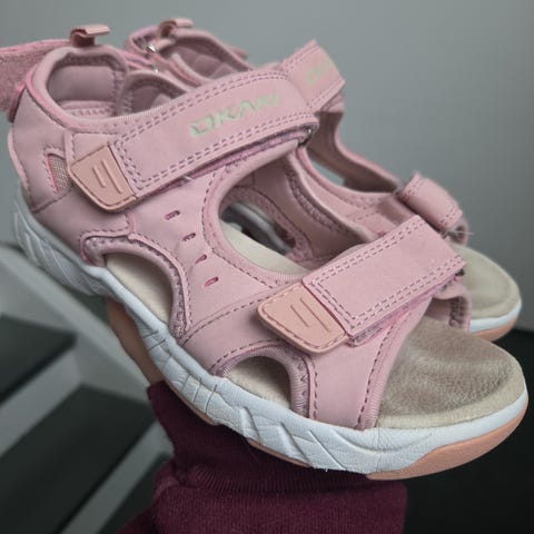Pent brukte mørke blå/sorte sandaler i størrelse 37, fra Okaki.