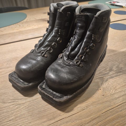 Gamle rulleski med rottefella-binding
