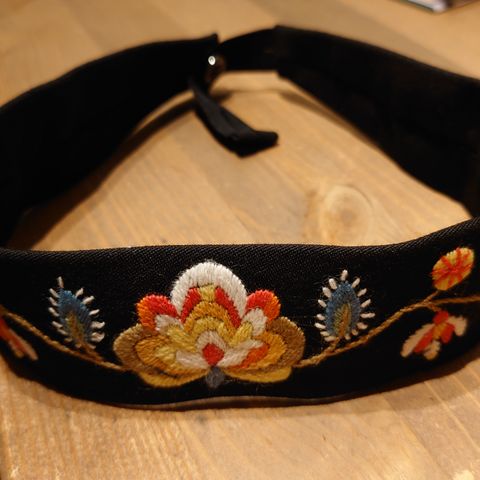 Nydelig svart pannebånd som justeres med strikk bak.