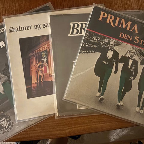 Selger en variert samling LP-plater og singler (7") fra 50-tallet til 80-tallet. Her finner du bÄde kjente klassikere og mer sjeldne utgivelser innen pop, rock, viser, country, gospel og barneplater. Mange av platene er i god stand og noen har ekstra samlerverdi.