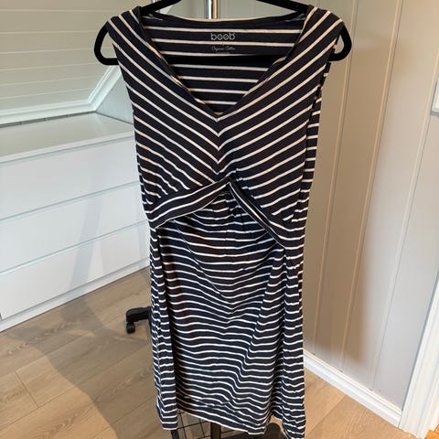 1 mørkeblå med hvite striper og korte ermer