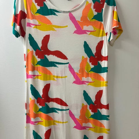 Morsom kjole med hundeprint. Fold foran under brystet. Lett og luftig. Aldri brukt.
