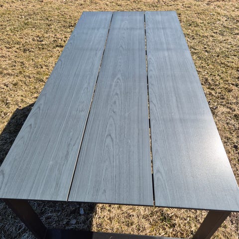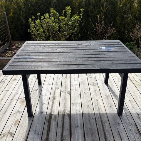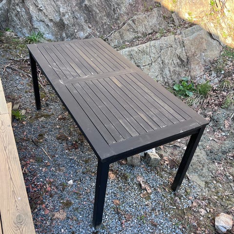 Hagebord med illeggsplate selges. Bruksmerker som prøvd vist på bildet, og det trenger en vask. Tungt og stødig bord.