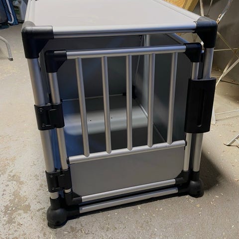 Active Canis hundebur til salgs. Kun brukt to uker, så fremstår som tilnærmet ubrukt. To dører. Mål ca 61x46x51cm. Brukt til Jack Russell. Må hentes.