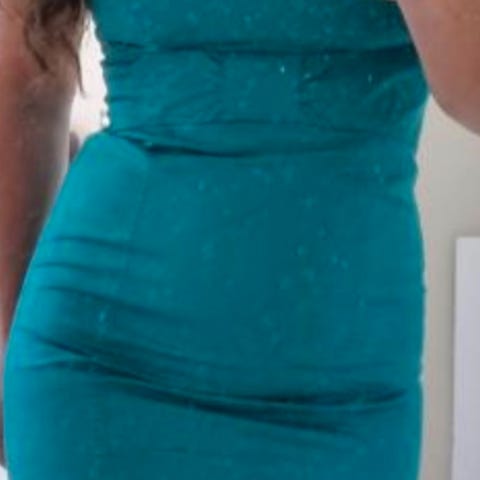 Ubrukt blåturkis kjole fra HM str 36. Glidelås i siden. Går til knærne. Fra ca 2005. 100% bomull. Bilde to er mest lik.