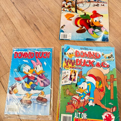 Selges masse Donald Duck, fra 80, 90 og 2000 tallet. 31 stykk blader, 1 pocket bok og 4 Onkel Skrue. Kan sendes, hentes på Tjøme eller i Oslo. Pris 220