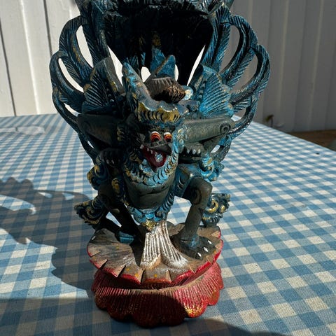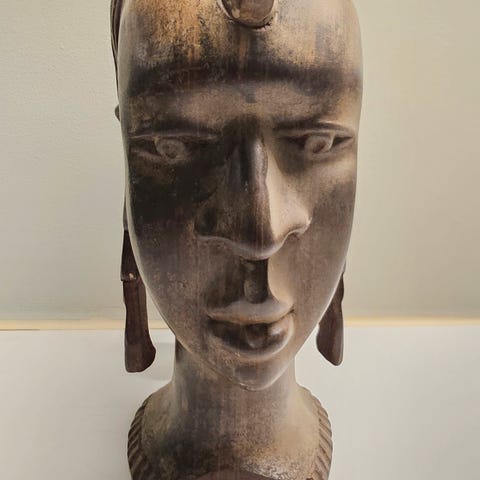 💬 Figuren ble opprinnelig kjøpt av norsk familie bosatt i Liberia, og har stått innendørs siden 60-tallet. Den fremstår som et sjeldent, autentisk stykke vestafrikansk kunst og kulturhistorie.