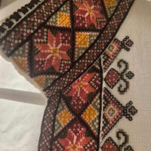 Beltestakk, skjorter, sjal, hodebånd og bunadsølv selges samlet.