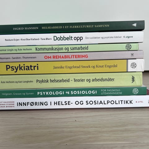 Alle bøkene er kjøpt helt ny på Cappelen Damm med tanke om å ta opp fag (gjorde ikke det) . Åpnet et par ganger, ellers helt som ny.