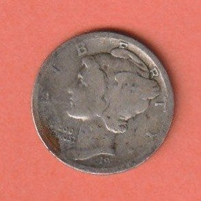 USA Mercury Dime Mynt 90 % Sølv 1937.