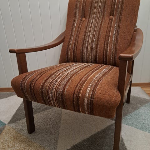 Flott stol i skinn. Patina, men hel og i orden, god vintage stand.
