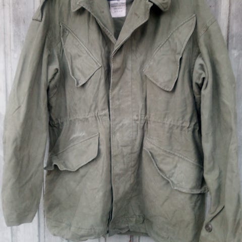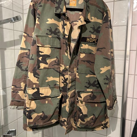 Lang Armyjakke fra 2000-tallet m/ Bøffel print på ryggen 🦬