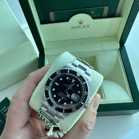 Selger en ikonisk Rolex Submariner 16613 med en ekstremt sjelden tropisk skive som skifter farge i lyset – fra dyp blå til intenst lilla. Denne skiven er et naturfenomen i seg selv og gir klokken et helt unikt og iøynefallende uttrykk som samlere verdsetter høyt.