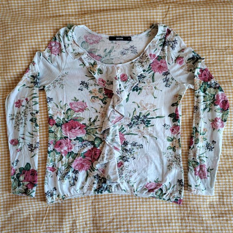 Tags: vintage blomster hvit rosa retro lin pastell knytetopp bluse y2k