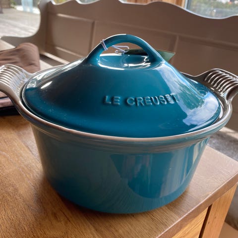 Le Creuset støpejernsgryte 4,2l matt sort(uten emalje). Selges da den ikke blir så ofte brukt. Ingen synlige riper/skader. Den burde bli oljet inn litt før bruk. Kjøpt for ca. 1 år siden. Ny pris da er ca. 3400kr.