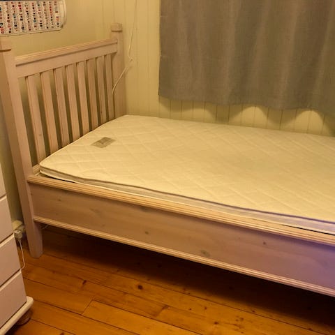 Helt ok seng, ikke mye brukt. Kan få med madrass hvis ønskelig. Må hentes i Askim.