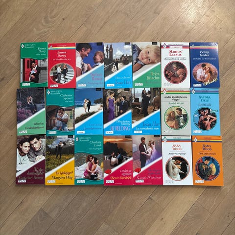 Selger min samling av Romantikk bøker fra Harelquin (Harlequin romantikk - grønne, lilla, lyseblå bøker)