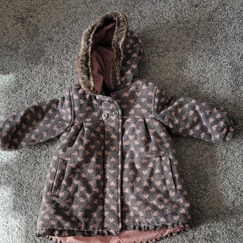 Gammelrosa, foret kåpe i 50 % ull. Str 4 år. Samme gråbrune farge på for og mønster ytterside