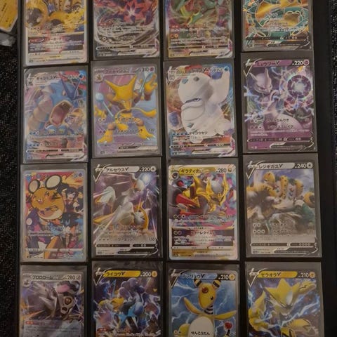 Selger en stor bunke med masse ulike japanske pokemon kort