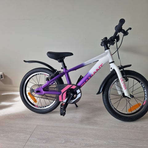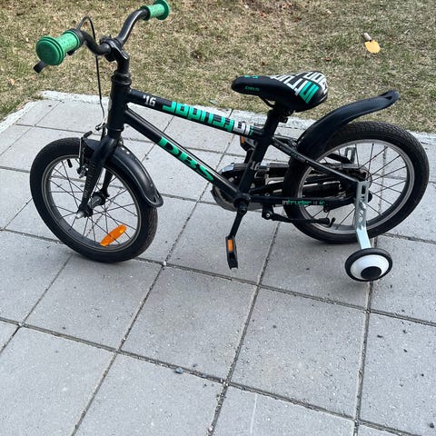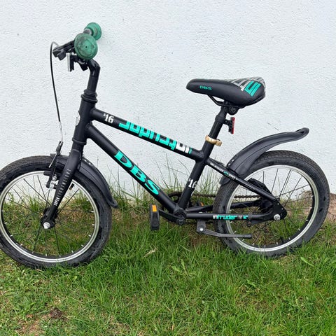 DBS Intruder 420 barnesykkel med 16-tommers hjul i svart farge med røde og hvite detaljer. Sykkelen har rett styre med håndbrems foran, dempegaffel og skjermer foran og bak. Setet er justerbart i høyden for å kunne tilpasses barnet. Egnet som barnesykkel til hverdagsbruk og sykling på asfalt og lett grus.Pent brukt.