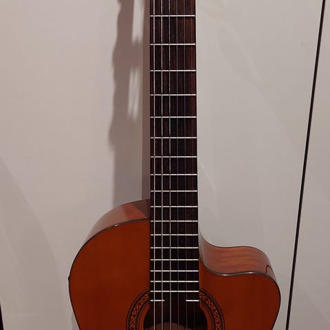 Gitaren ser ut at den er så gammelt. Den er i solid stand, se på bildet. Jeg har ingen informasjon selges som det er på oppgitt pris.
