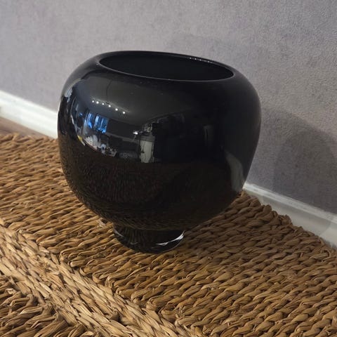 Porcelæn, VASE, MENU, Sort vase med flott glans og melkehvit inne. Den er er 17 høy, åpningen er 7 cm