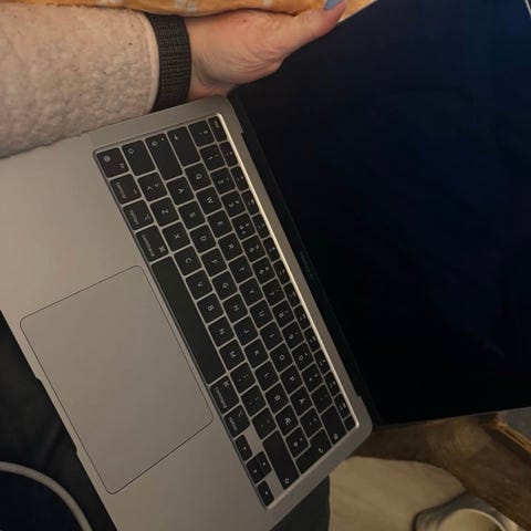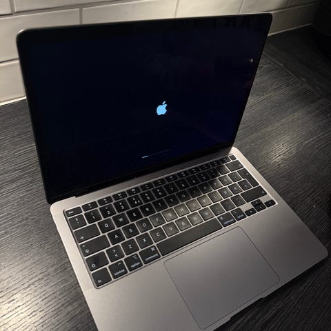 MacBook Air 13, 13,3 inch, en liten ripe/bulke, men den er ikke på skjermen! Men resten e helt perfect😊