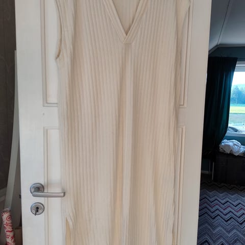 Panikk-kjøp da strandkjolen var gjenglemt hjemme 🤪 Så nå har jeg to nesten like kjoler. Kan brukes både på stranda eller som en kul kjole til middag. Rekker med litt under knærne og jeg er 167 cm høy. Tettsittende. Kjøper dekker evt porto.
