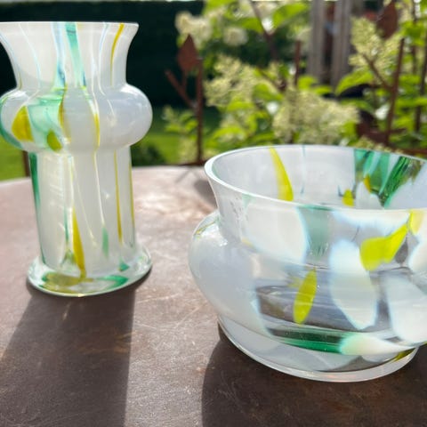 Samlemani, landhandel, nostalgi, glass, vase, dekor.