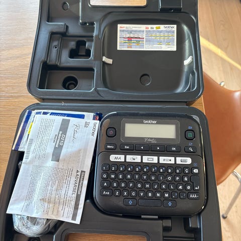 Brother P-Touch H102 etikettskriver i grå farge. Denne modellen er utstyrt med et tastatur for enkel tekstinnskriving og funksjonsknapper for rask tilgang til ulike innstillinger. Ideell for merking av gjenstander i hjemmet eller på kontoret. Kompakt og brukervennlig design.