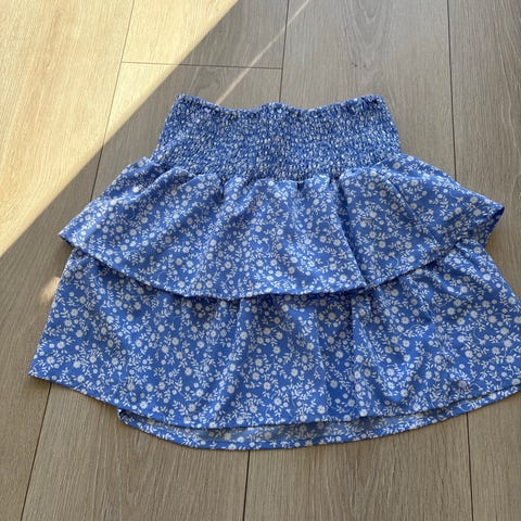 Pent brukt skjørt med blomstermønster i størrelse 158/164. Liten sløyfe nede på framsiden.
