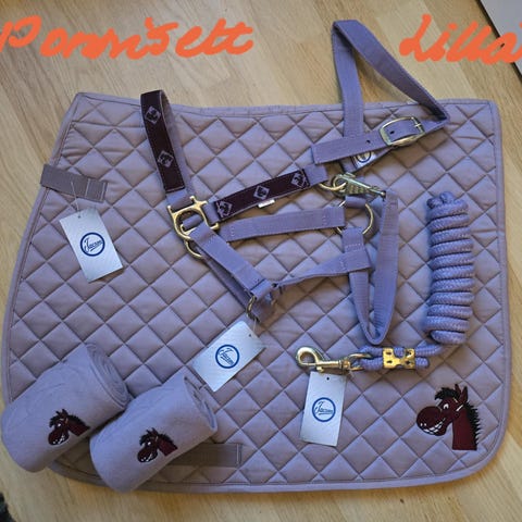 9. Blå dressur sjabrak, en i str full og ponni, 50kr