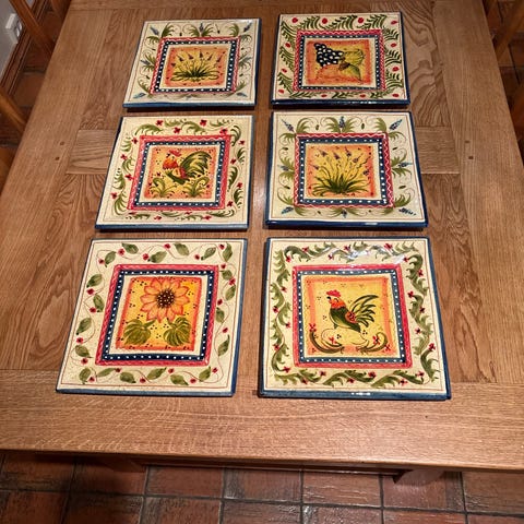 Vin bordbrikker/koppbrikker. Er med 6 forskjellige vin typer ☺️ 11,5 cm lang og 9,5 cm bred.