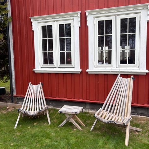 Har disse tre stolene til overs. De blir nok aldri brukt, selv om jeg også gav dem et strøk olje før sesongen. Selger dem for kr 300,- per stykk, eller kr 750,- samlet. Tar lite plass å lagre jmf. bilder. To er av heltre bjørk og en er av heltre eik/teak, god kvalitet har de i hvert fall. Se bilder for mål.