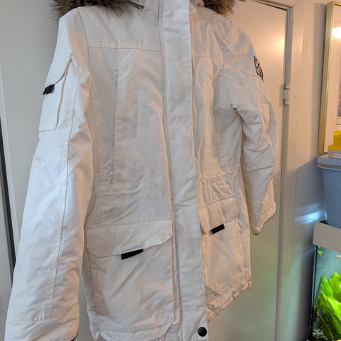 Parkas / vinterjakke med hette. Hvit. Str. 14 år.