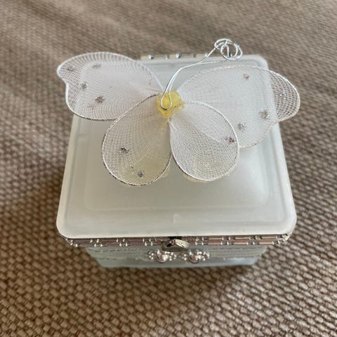 Skrin er kjøpt på søstrene grene. Jeg har ordnet blomstene. Pent skrin til oppbevaring av smykker.