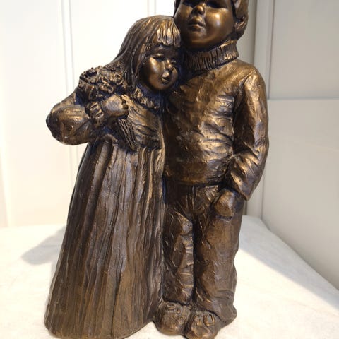 Kjærestepar. Eller to barn som står tett sammen. Gutt holder rundt jente.