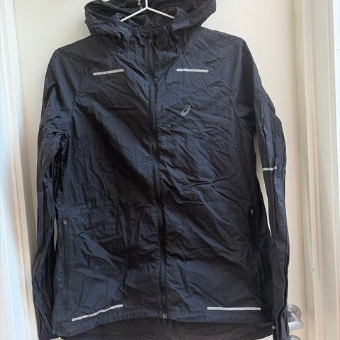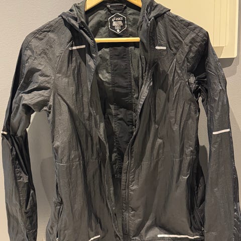 Pent brukt løpejakke i str S fra Asics. Glidelåsen har løsnet nederst av og til, men lett å få hektet på igjen.