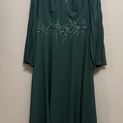 Fint dekorert. Høy splitt på begge sider, må ha tights under. Se siste bilde. Glidelås i sidene.
