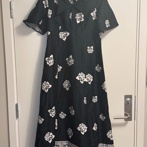 Svart vintage kjole laget i Danmark. Mangler båndet som skal rundt midjen, men det er lett å finne noe som erstatter.